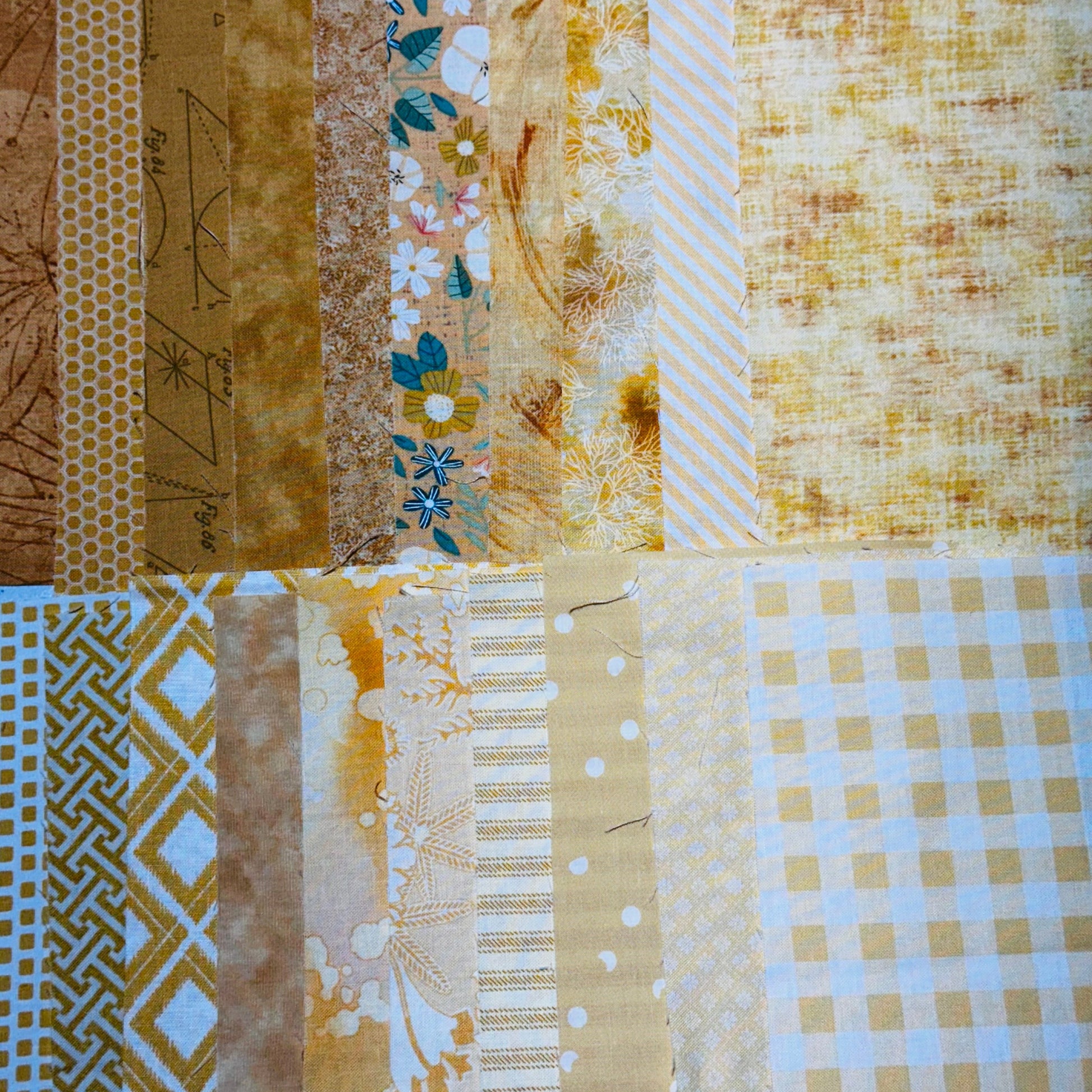 This is a package of 20 pieces in size 4.5" x 10" in a range of light Yellows with slightly orange undertones.