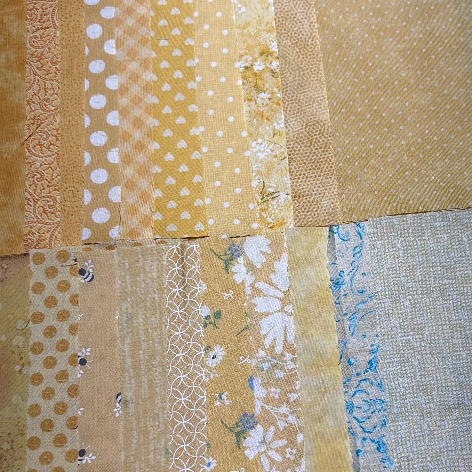 This is a package of 20 pieces in size 4.5" x 10" in a range of light Yellows with slightly orange undertones.
